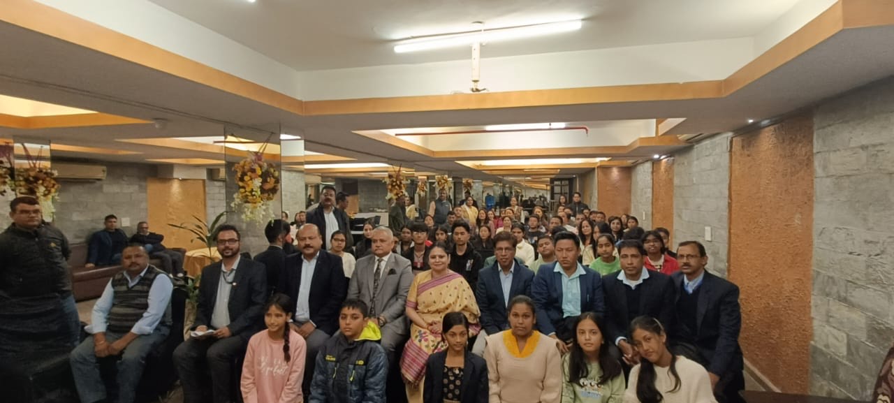 Major General Rajesh Kumar Jha, AVSM (Retd.) Director (Personnel), NEEPCO and Smti Anupama Jha on 13/12/2023 at New Delhi, interacted with the children from the states of Meghalaya, Mizoram, Tripura and Nagaland who are competing for the National Level Painting Competition on Energy Conservation - 2023, organised by the Ministry of Power under the National Awareness Campaign.
