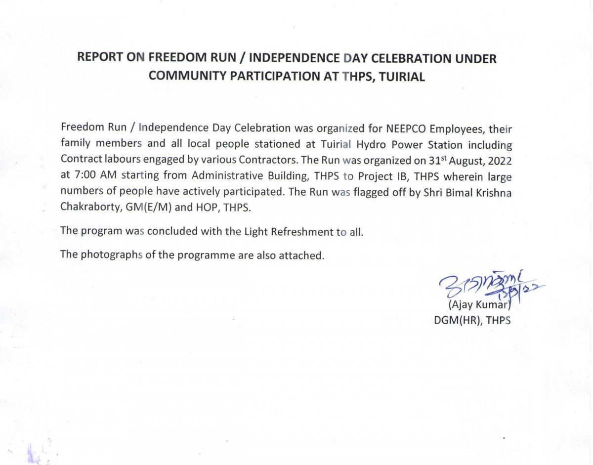 AKAM Event : Freedom Run / Independence Day Celebration under Community Participation at THPS held on 31-08-2022.